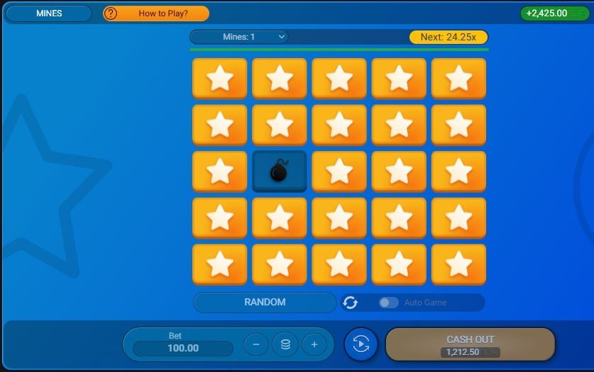 - Open the Mines game and switch to 1 mine mode.